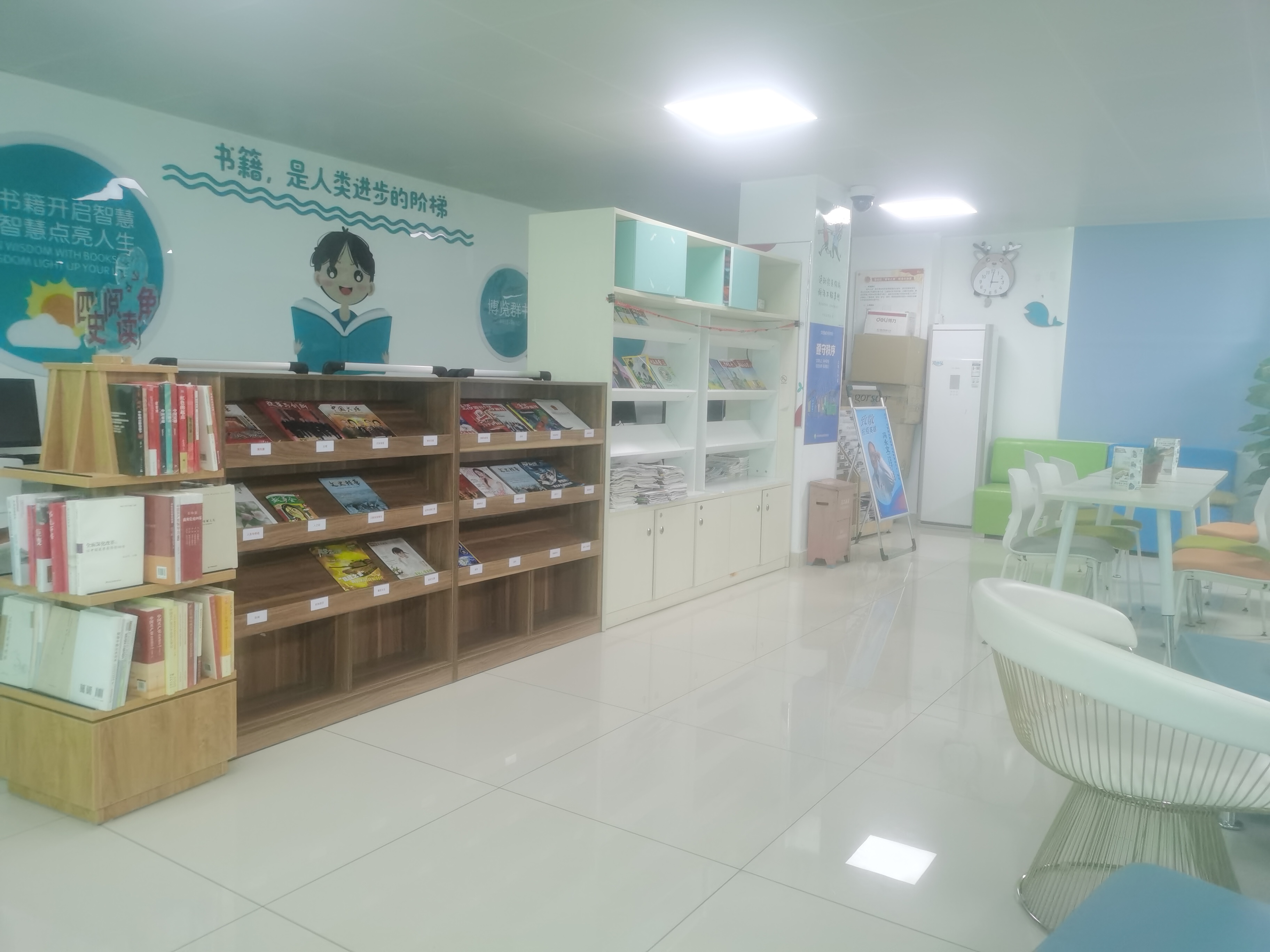 位于和平社区工作站二楼205,面积200平方米,藏书9195册,馆内设置阅览座席62个,其中电子阅览座席8个,少儿/青少年阅览座席54个,提供免费图书借阅、报刊阅览等服务。开展读者活动,深受读者喜爱。